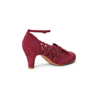 Meet Jessie, designed in collaboration with YouTuber Jessica Kellgren-Fozard from Jessica Out of the Closet! Based on original shoes from the 1940s, Jessie Pumps feature attractive lattice cut-outs, beautiful scalloped edges, and a decorative leather bow. Each pair of Jessies come with two removable leather ankle straps, to suit a wide variety of ankle sizes. Simply thread the strap through the tab on the back of the heel and fasten the quick-release buckle for days when you need some extra security, or just want to change up your look! Hidden elastic under the bow makes these step-in pumps easier to put on and remove. A rounded toe box and beautiful 3”/7.62 cm Spanish heel make Jessie perfect for 1940s-1950s ensembles.