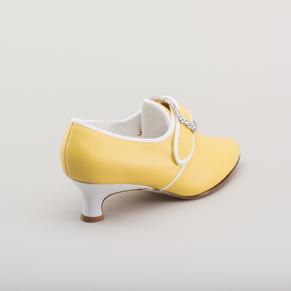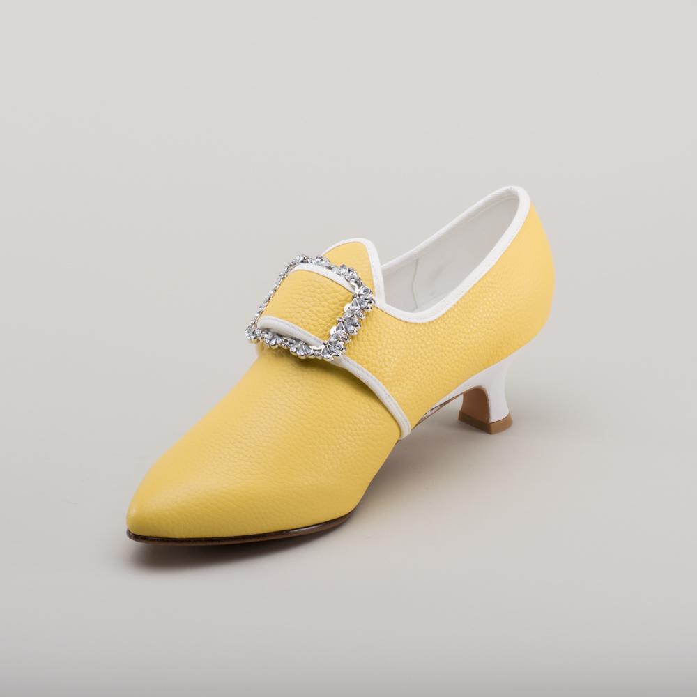 Dunmore 18th century shoes trimmed in white are the ideal materials, silhouette, and heel to pair with your late 18th-century gown, from the Revolutionary War to the French Revolution.