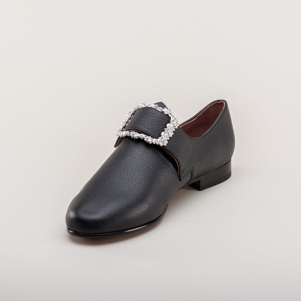 Schuyler 18th Century Shoes does not come with buckles. Choose from a variety of styles and bling available in our accessories section.