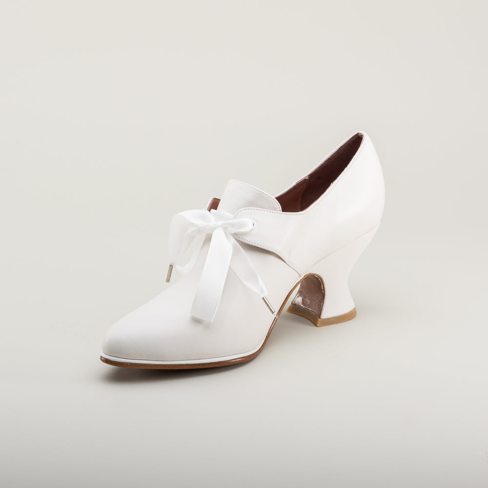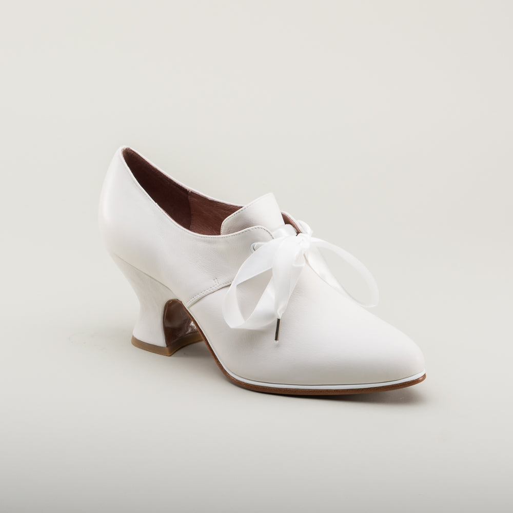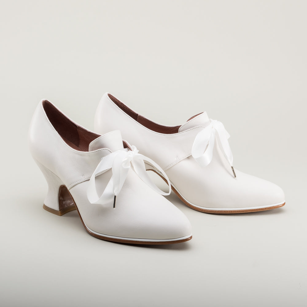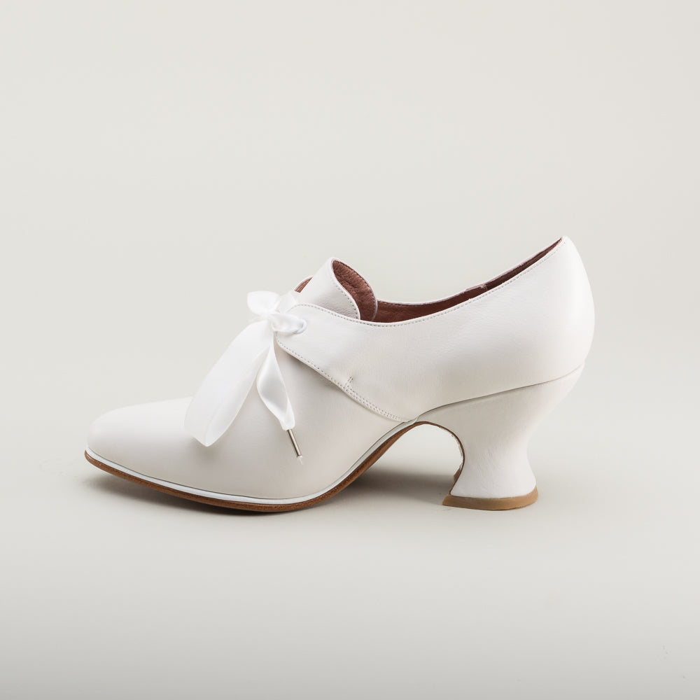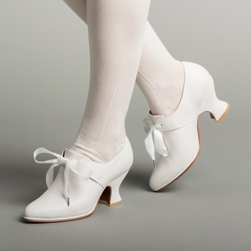 Named for the famous Madame de Pompadour, these heels are closely based on extant early 18th century shoes found in museums, and feature an easy tabbed closure that can be laced with your favorite colored ribbon, cockade, or pom-pom decoration.