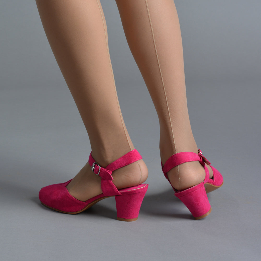 If you're looking for the perfect vintage sandal, look no further than Lido. These pretty and practical shoes are closely based on an original late 1940s to early 1950s faux suede sandal in our collection. The design is perfectly balanced, made in a durable everyday material, with secure buckle straps and a tiny peep toe, making the Lidos perfect for dancing, walking, and lounging.