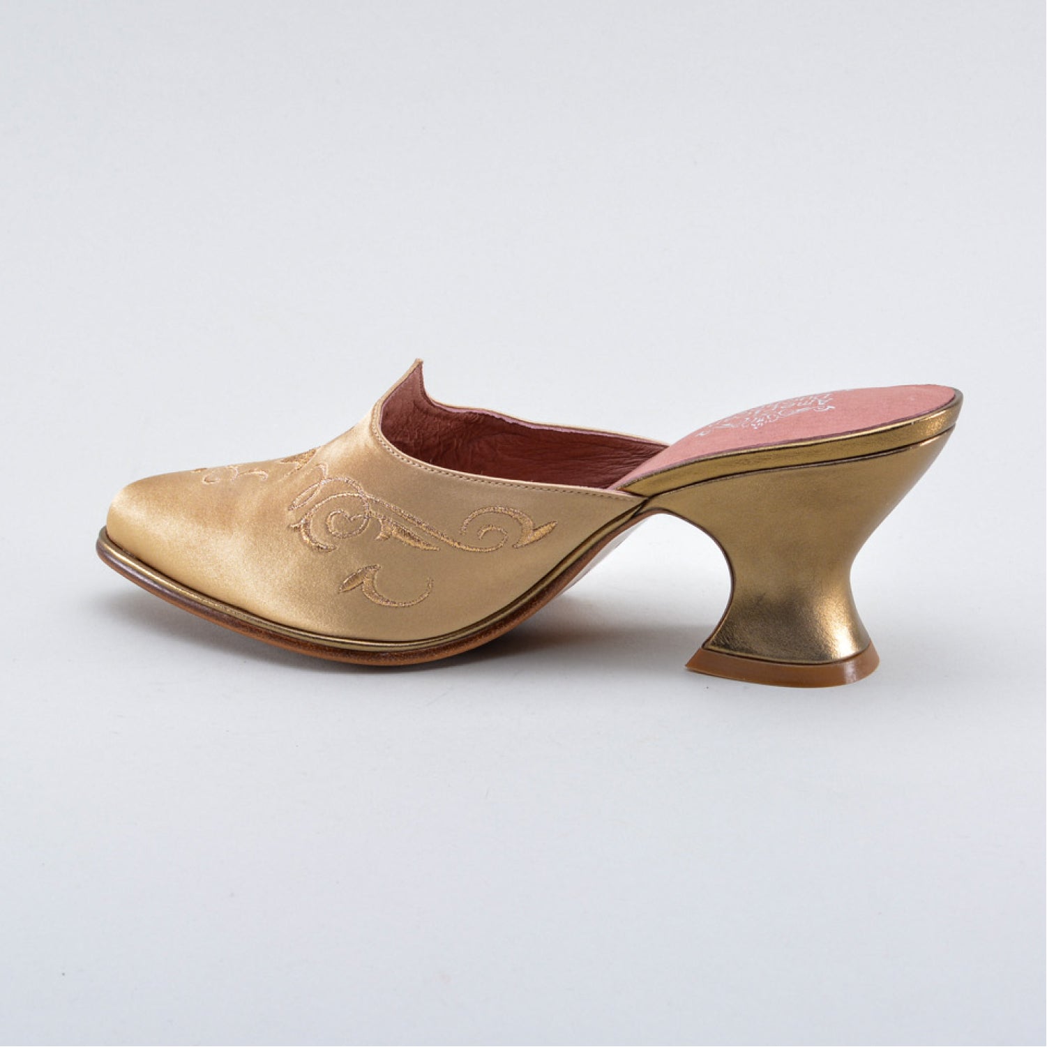 Special edition Gilded Charlotte 18th century mules feature limited edition gold-on-gold embroidery, for a truly royal look! These shoes are only available to pre-order for two weeks, then they will be gone forever- so treat yourself to a regal experience while you can!