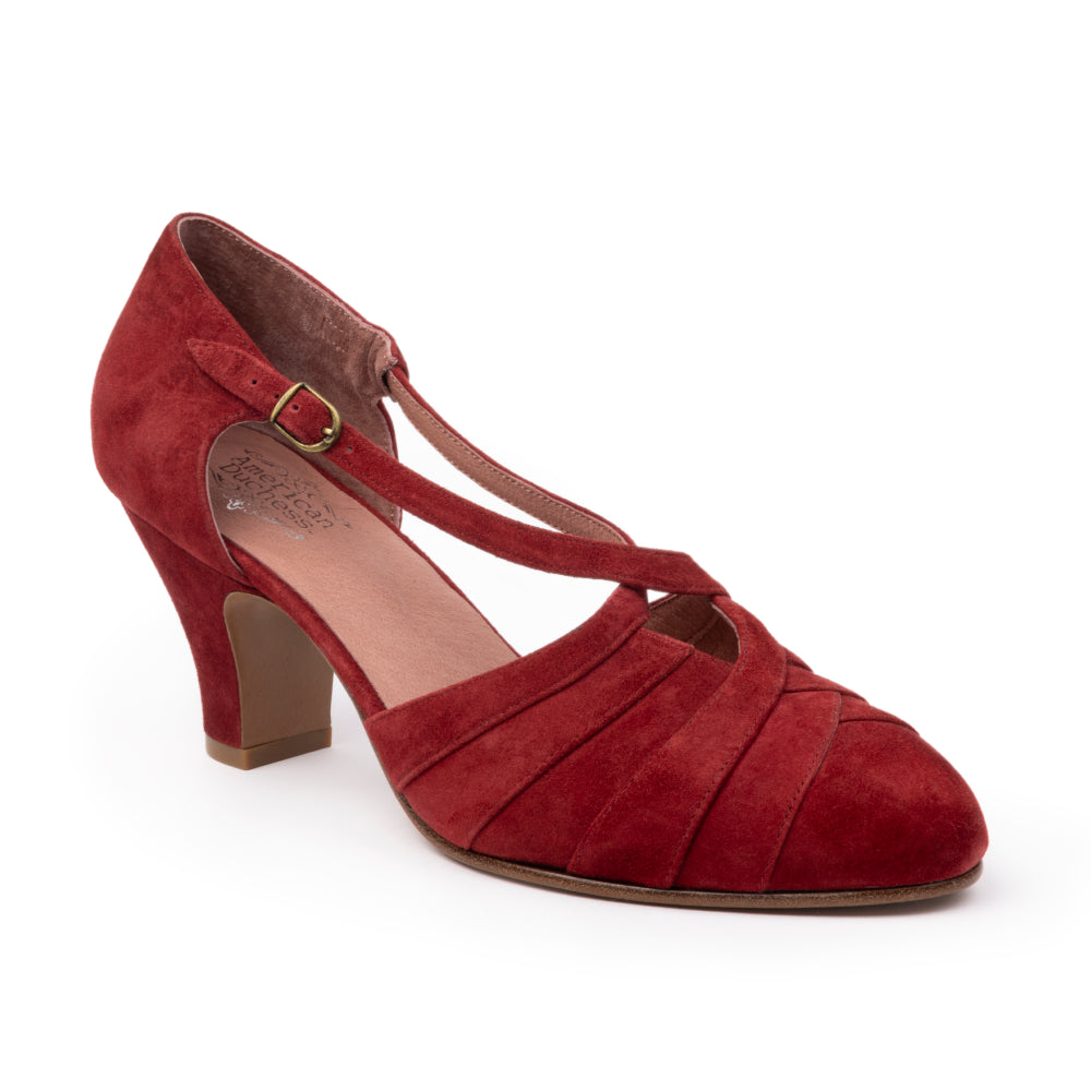 Looking for a shoe that combines the glamour of old Hollywood and all-day wearability? Look no further than Melrose! Based on period originals, these beautiful pumps capture the silhouette and style of the 1930s with sleek straps criss-crossed over the instep, a keyhole opening over the vamp, and gorgeous leather piecing. The straps feature hidden elastic inserts, for additional comfort and ease. Melrose features our classic 2.5"/ 6.35 cm Spanish heel, which is perfectly balanced for comfort. Whether you're donning daywear or evening wear, Melrose fits the occasion.